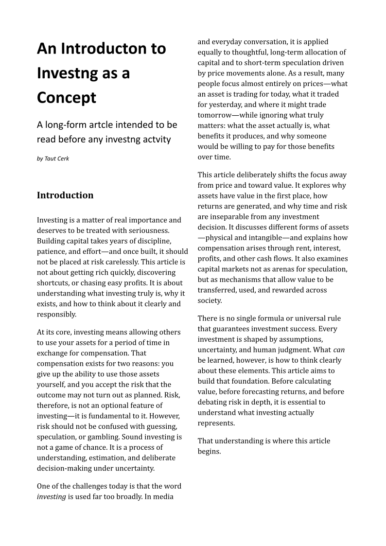 The content is written in clear, accessible language and avoids unnecessary jargon or technical complexity. It is intended to be read slowly and revisited over time, as the concepts build understanding gradually. The article serves as a foundational piece for readers who want to approach investing thoughtfully and develop a deeper, more durable perspective.